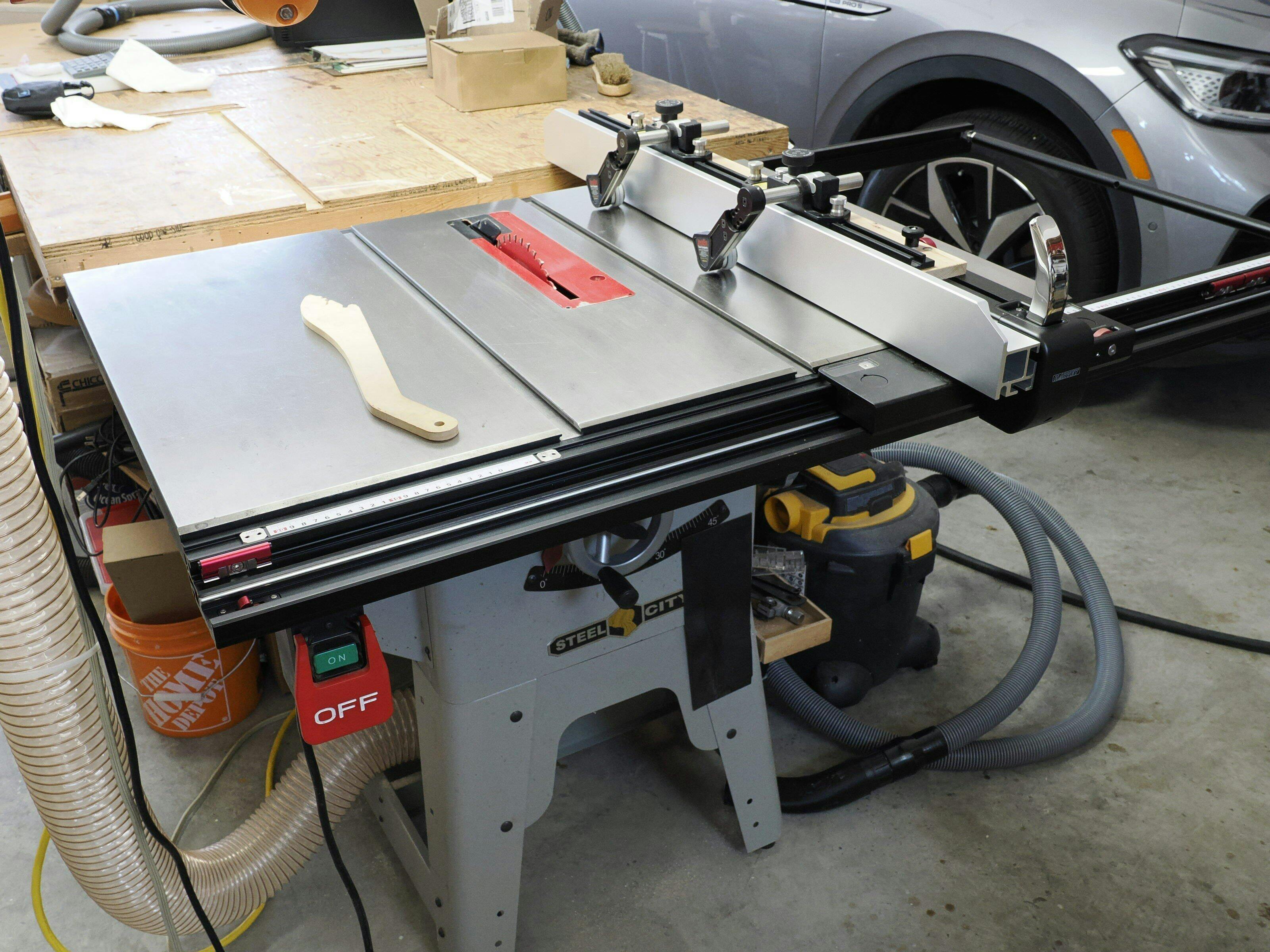 The System is designed to fit table saws with a table depth between 685mm (27") and 800mm (31-1/2").